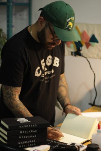 Libro que recopila el estudio y abstracción de formas de rostros encontradas en algunas esculturas, dibujos cerámicos y tejidos de cultura precolombina colombiana por Carlos Pinzón, tatuador Colombiano.